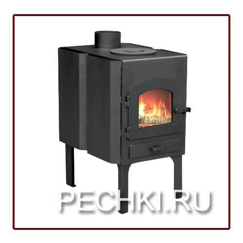 Несмотря на маленький размер, эти печи способны довольно быстро прогреть помещение. Присутствует небольшой ящик для золы и вертикальное подключение к дымоходу.